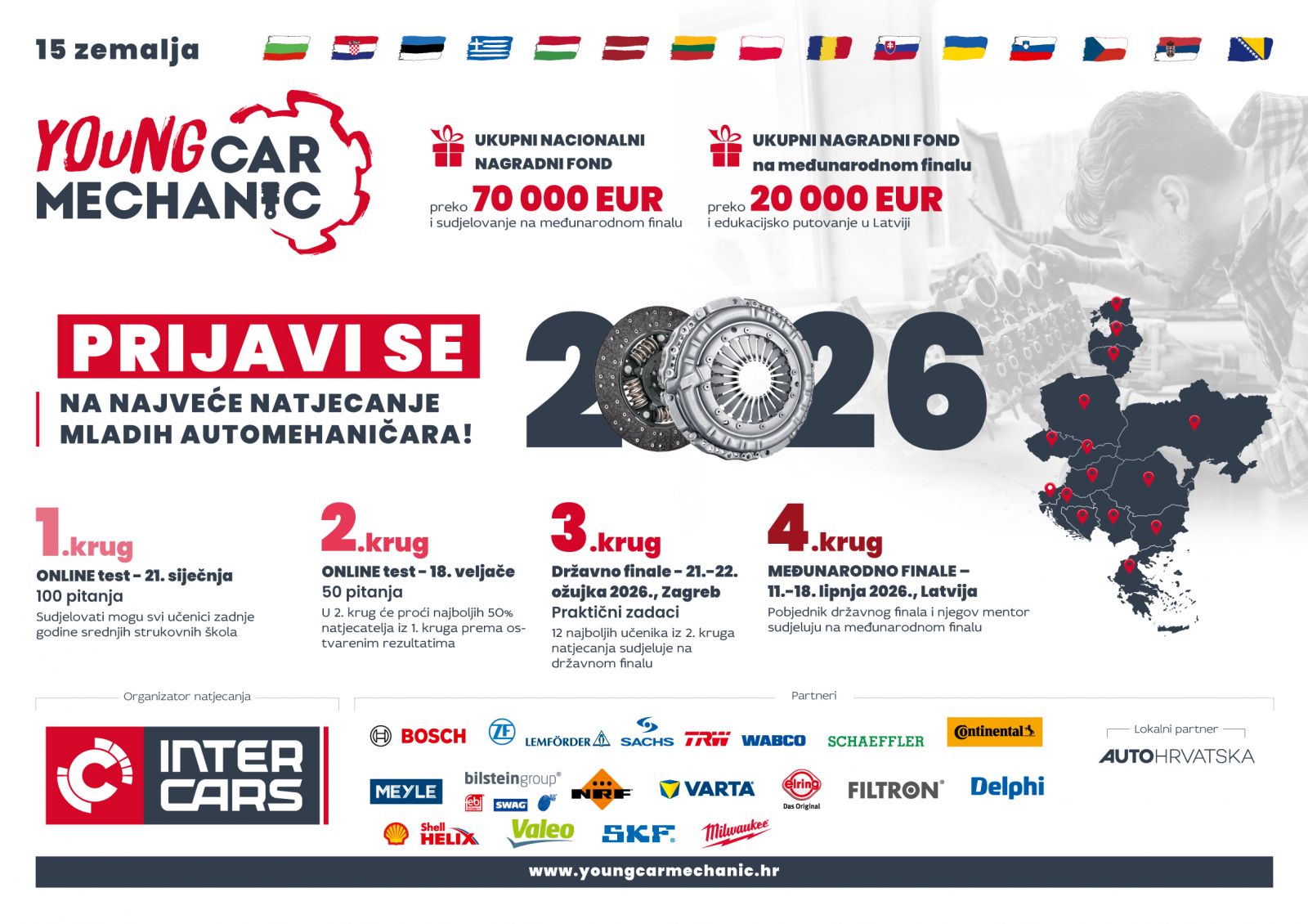 U srijedu, 21. siječnja, održan je prvi krug Young Car Mechanic natjecanja 2026., u kojem su se srednjoškolci završnih godina tehničkih škola iz cijele Hrvatske natjecali na online testu znanja. Natjecanje se odvijalo preko online platforme, a učenici su imali 100 pitanja i 100 minuta za rješavanje.